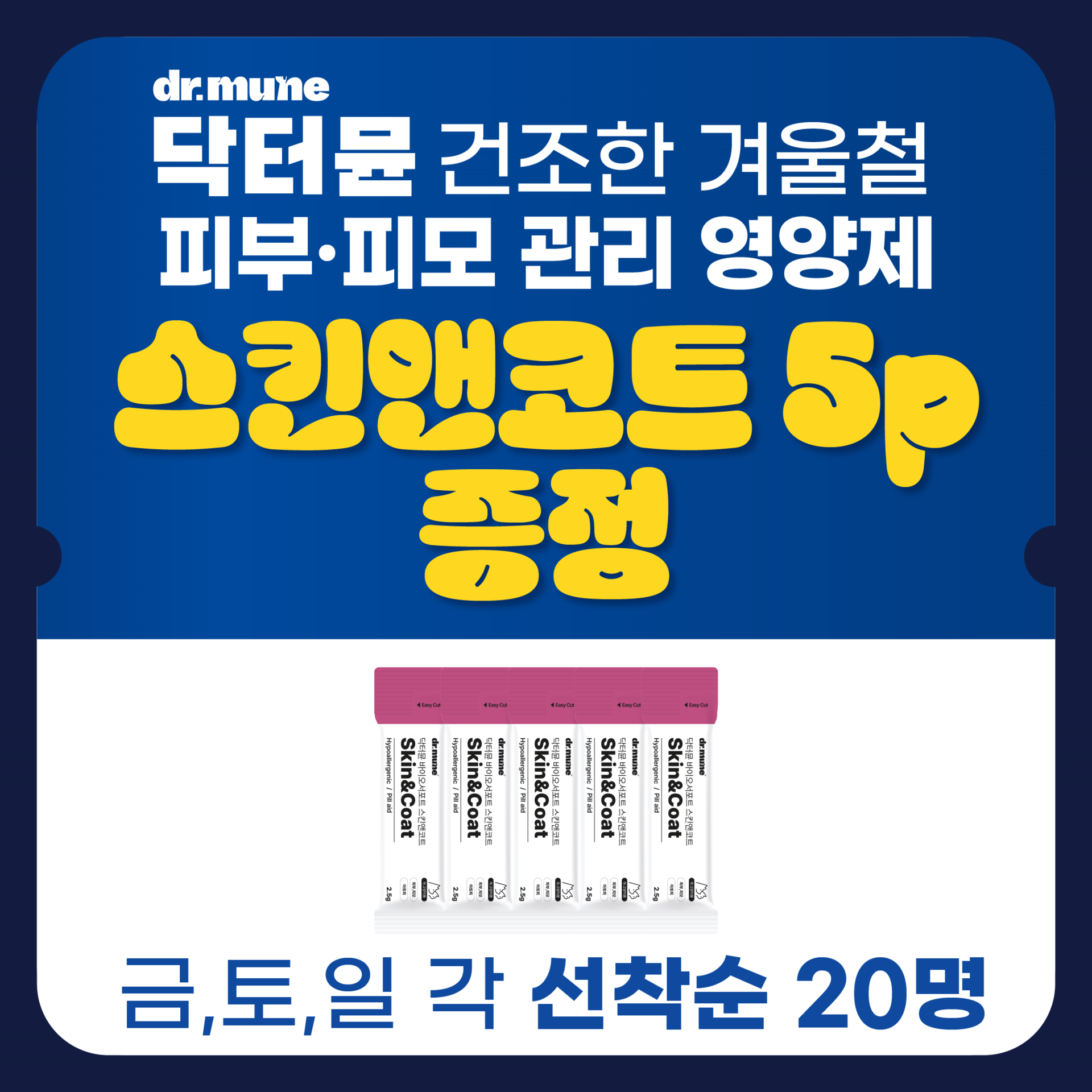 ▶ 스마트스토어 알림받기 시 매일 선착순 20명 탁터뮨 스킨앤코트 5P 증정